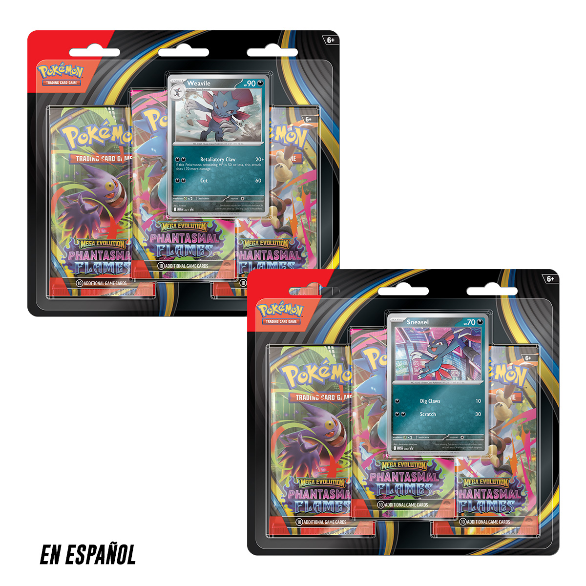 3 sobres de mejora de Pokémon Megaevolución ME2 Llamas Fantasmales por blíster