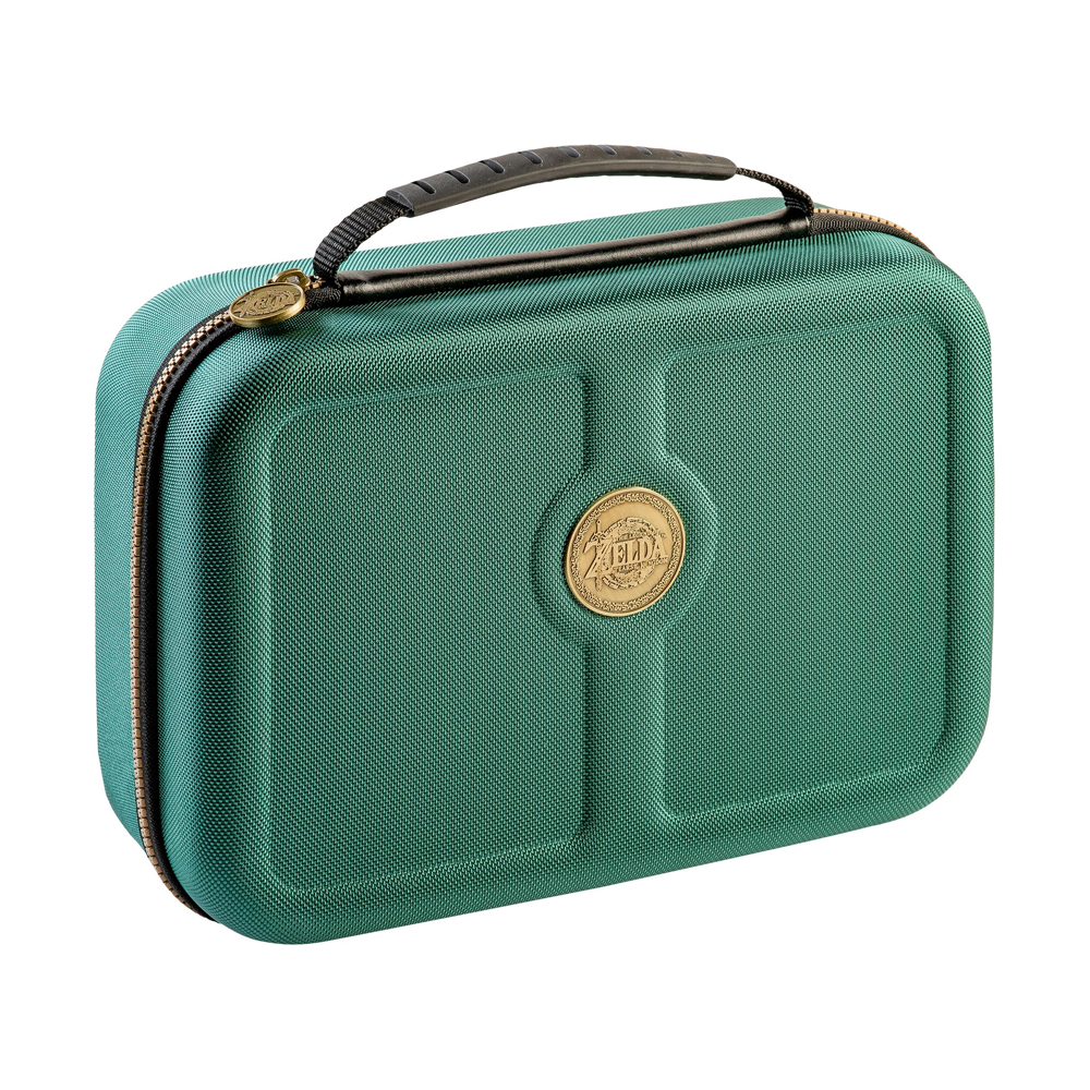 ¡Esta es la bolsa de almacenamiento de lujo para Nintendo Switch de Game Traveler para almacenar y proteger todo el sistema Nintendo Switch para los verdaderos fanáticos de Zelda! El estuche de Nintendo Switch cuenta con compartimentos segmentados que aseguran su Nintendo Switch o modelo OLED de Nintendo Switch con o sin base de carga, Joy-Cons o Pro Controller.