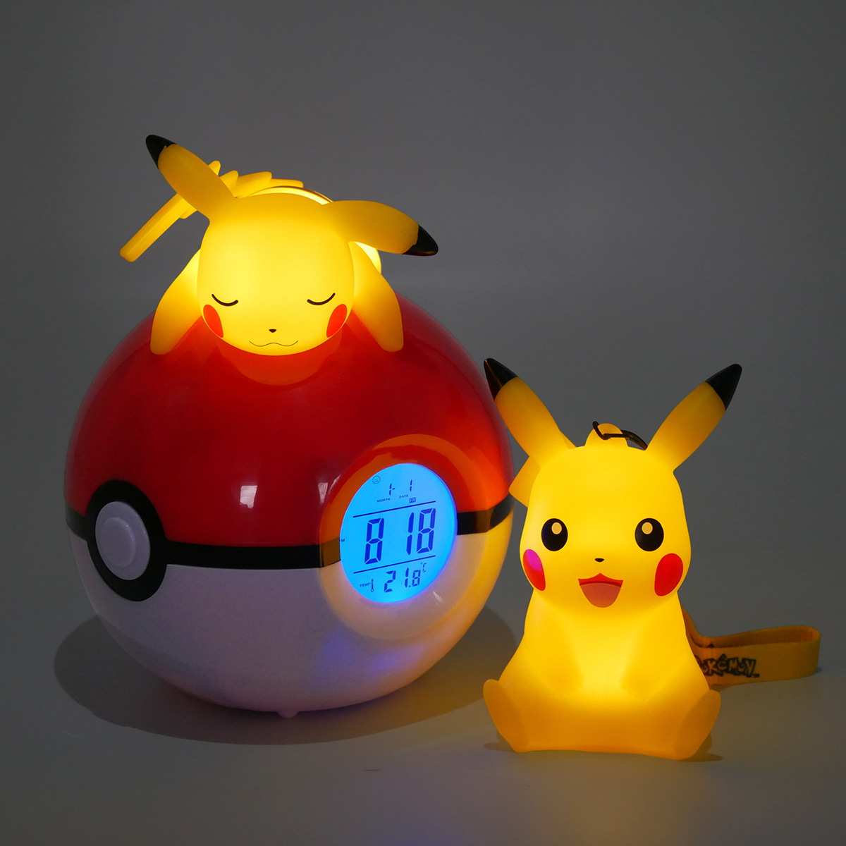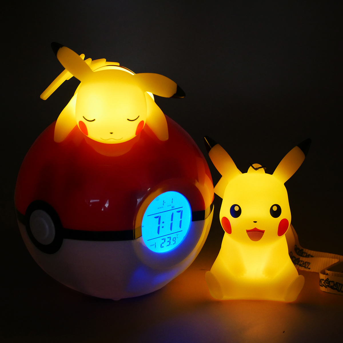 LUZ PORTATIL CON RELOJ DESPERTADOR DE PIKACHU SOBRE POKEBOLA