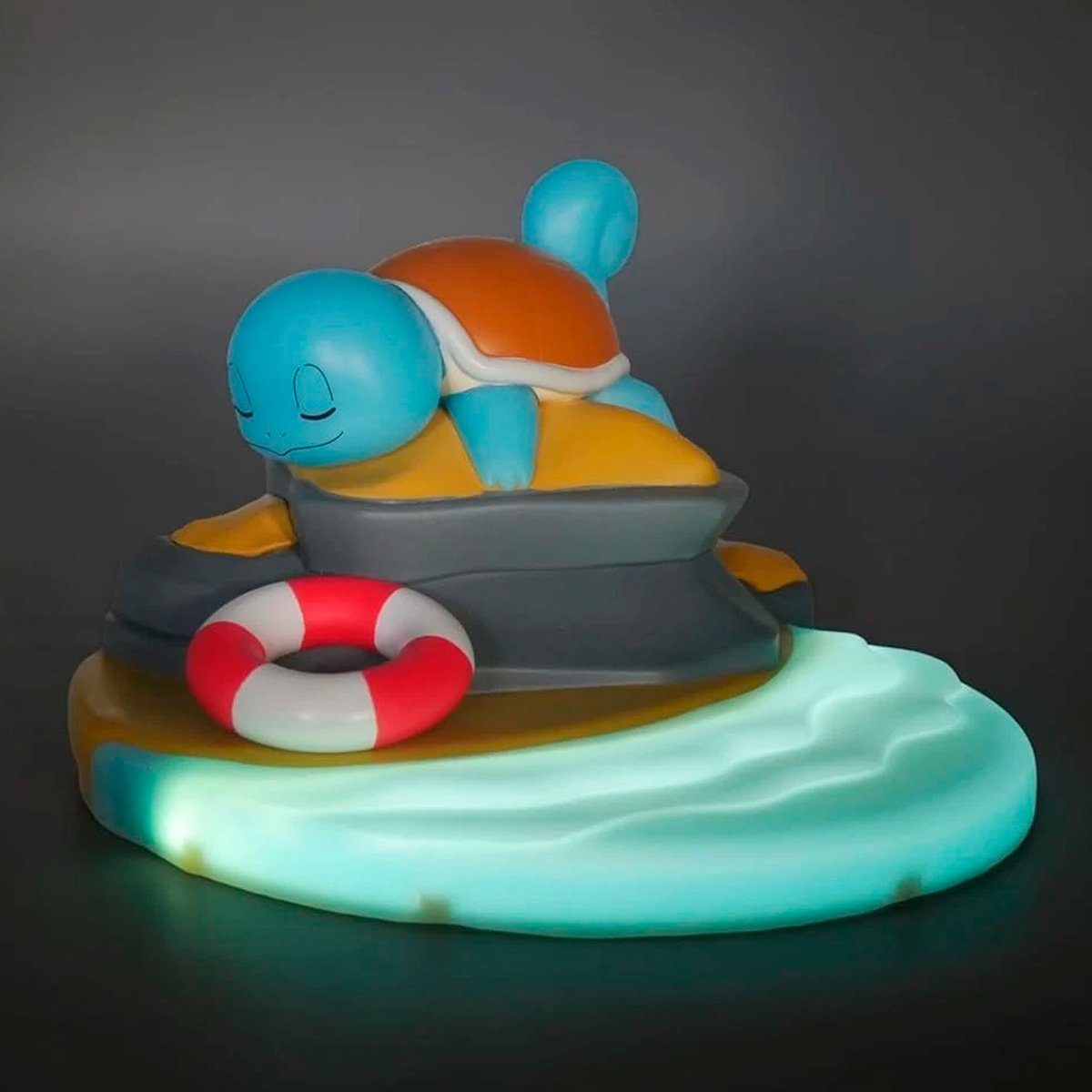 Este encantador diorama luminoso de Squirtle captura una escena serena y acuática, ideal para los seguidores de Pokémon que buscan un toque de tranquilidad y fantasía en su hogar. La figura de Squirtle está cómodamente ubicada junto a un salvavidas, sobre una base que simula una poza de agua iluminada. Funciona como un difusor de luz LED, ofreciendo la opción de una intensidad fija o variable para crear la atmósfera perfecta según tu estado de ánimo.