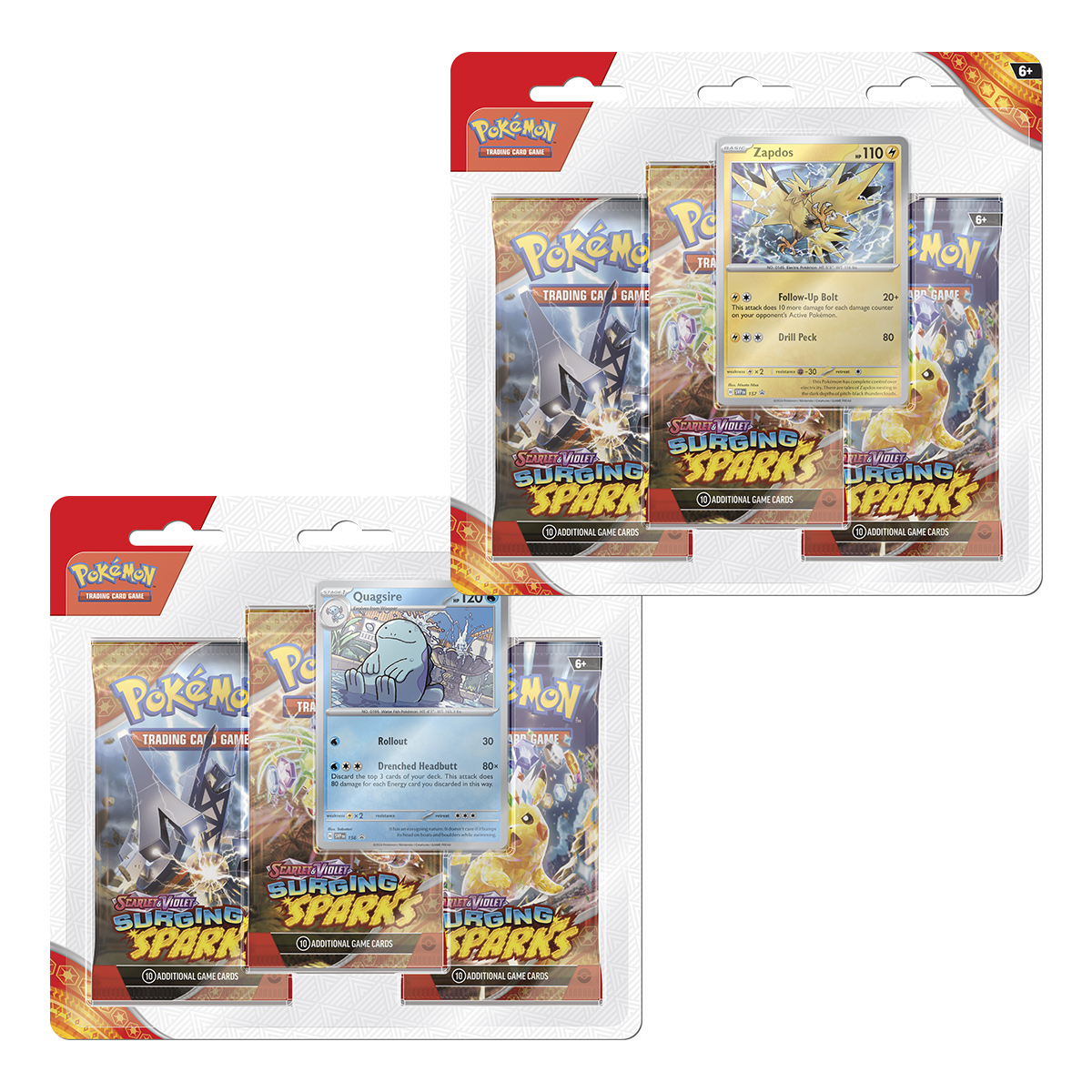 Pokemon TCG Scarlet & Violet: Surging Sparks – 3 Pack Blíster Zapdos o Quagsire En Inglés que incluye: